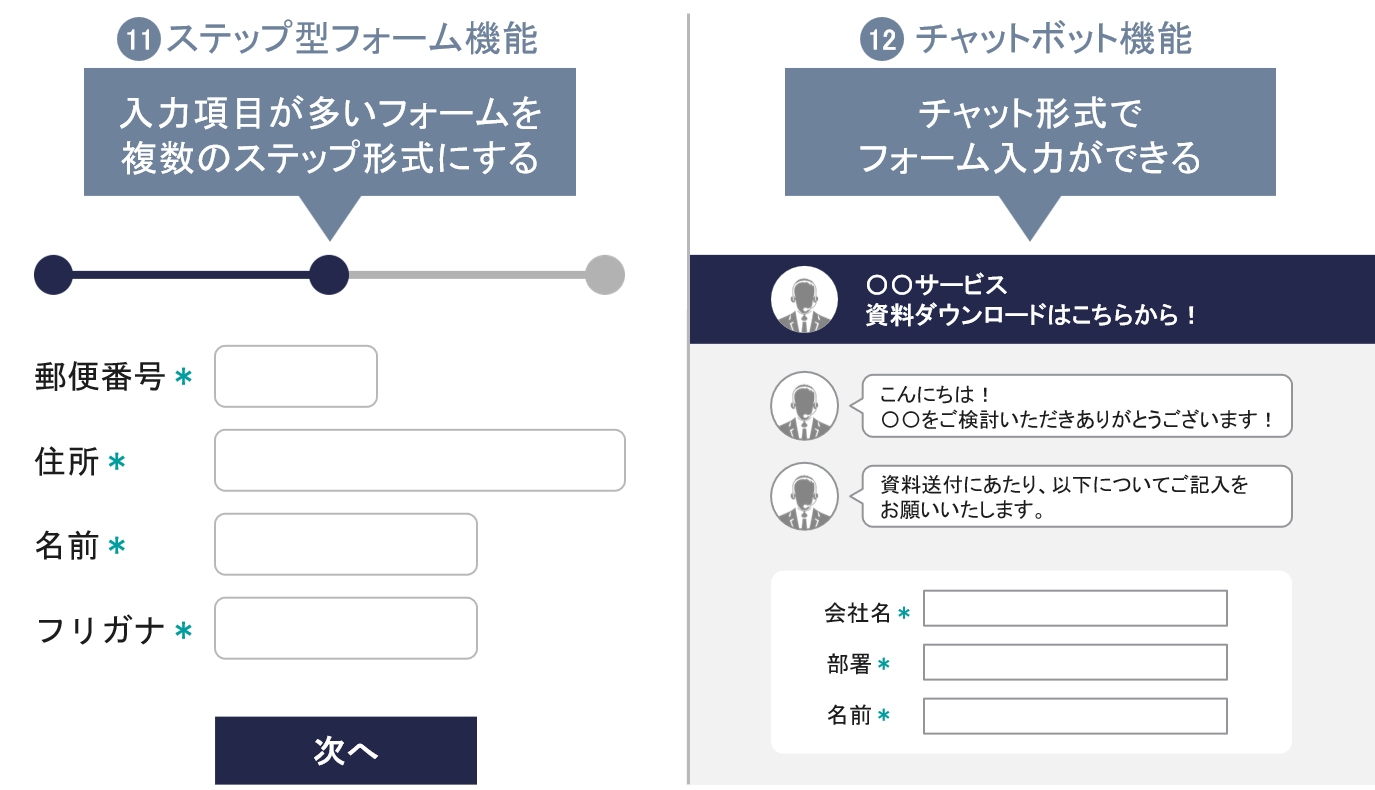 BtoB企業では、媒体に合わせてフォーム項目を柔軟に変更できる機能が求められる。そのため、カスタマイズ性の高さも重要な選定基準となる。